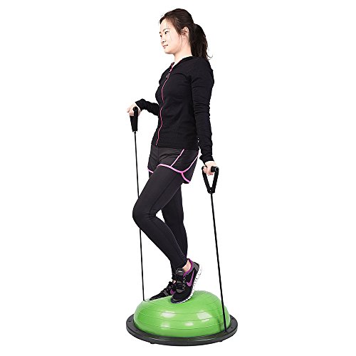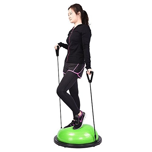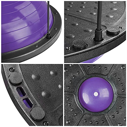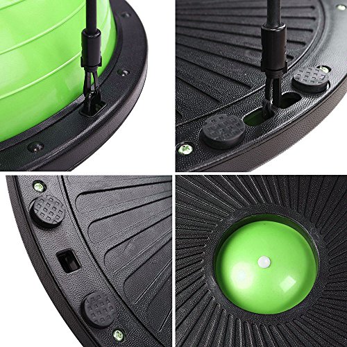 Product DescriptionSpecification:Material: PVC Ball And ABS Base(Environmental Friendly)Large Size: 22.8'(58cm)-Diameter Of Ball, 9.0'(23cm)-Height Of BallLarge Weight Capacity: 660 LbsPackage Content:1 X Yoga Exercise Ball2 X Elastic Strings1 X Air Pump1 X Valve Plug0