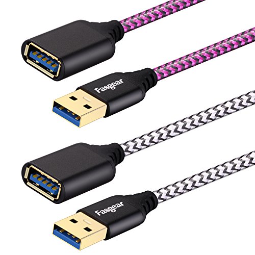-. Feature : Why choose Fasgear's cable: Each Fasgear's cable was tested strictly before delivery and 100% qualified. Besides, we choose premium copper, metal shell, gold-plated charging connector and durable braided jacket for the cable to ensure safe use by our customers. / PREMIUM DURABILITY: Upgraded connector with anti-slip design is equipped with premium metal housing for long-term usage, pling & unpling easily. What's more, Corrosion-resistant gold-plated copper contacts, foil/braided shielding and aluminum under-molding for long-term performance (without noise or signal loss). / 5Gbps DATA TRANSFER: This USB extender cord supports high speed USB 3.0 data transfer rate up to 5Gbps - 10X faster than USB 2.0 (480 Mbps), which allows you to transfer HD movies or files in just seconds, when your host is equipped with USB 3.0 port. Also backward compatible with USB 2.0, 1.1 and 1.0 (speed limited by USB bus). Plug& Play on universal system, no driver required. / SPECIAL DESIGN: The gold-plated connectors can bear more than 10000 times plug, so the lifespan is several time longer than ordinary cable. / WHAT YOU GET: 2-Pack 6-Feet USB 3.0 extension cables, 24-months hassle free Warranty, friendly Customer Service (24-hours prompt Reply).