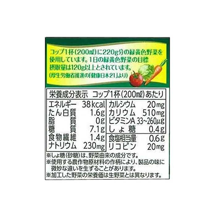 원재료:토마토 쥬스(농축 토마토 환원)고, 야채 쥬스((당근)인삼(농축 환원)고, 셀 리,피망(농축 환원)고, 호박(농축 환원)고, 콜리플라워(농축 환원)고, 브로콜리(농축 환원)고, 양배추(농축 환원)고, 아스파라거스(농축 환원)고, 양상추(농축 환원)고, 무우(농축 환원)고, 읽 #(농축 환원)고, 비츠,K《루》,평지의 변종,시금치,친 겐 코뿔소(농축 환원)고, 타마 파(농축 환원)고, 파슬리(농축 환원)고, 《구레손》,래디시)고, 식염,향신료,향신료 추출물