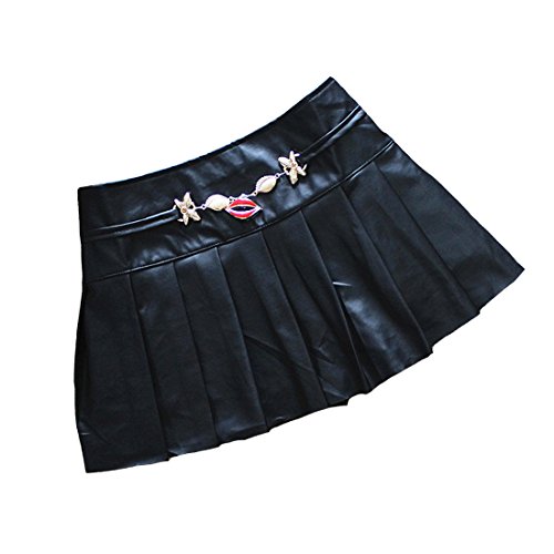 -. Feature : インナー付PU革ミニスカート / 素材:PU皮革 / サイズ:フリーサイズ; ウエスト66-94cm、丈:約29cm / カラー:レースベルト、6個ボタン、8個ボタン、チョウチョウベルト、唇、リング / ファッションのデザイン