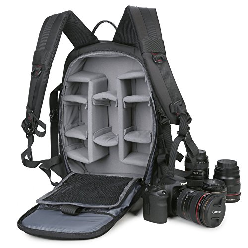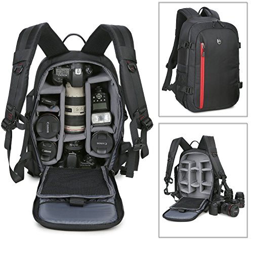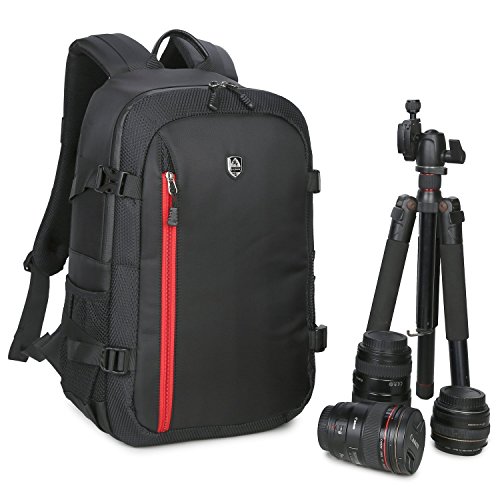 Abonnyc Large DSLR Camera Backpack Bag Case / Oxford Hiking Bag Laptop Travel Backpack Gadget Bag w/ Rain Cover , Black