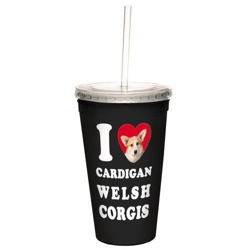 Tree-Free Greetings CC35028 I Heart Cardigan Welsh Corgis Artful Traveler Double-Walled Cool Cup with Reusable Straw, 16-Ounce