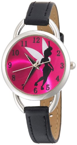 -. Title : Disney Women's TK1036 Tinkerbell Hot Pink Sunray Dial Black Strap Watch