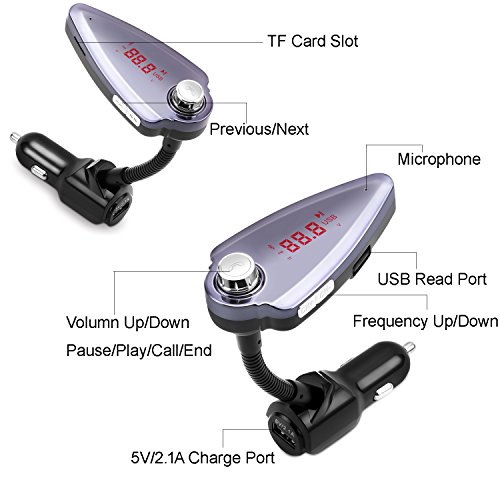 Faster USB charging station: this bluetooth car FM transmitter comes with an universal USB port 5V/2.1A output, charging your cellphones or other devices as car charger. Such as apple iPhone 5 5S 6 6S Plus;Android Samsung Galaxy S3 S4 Note 3, LG G5 G4, HTC, Blackberry, Nokia, Motorola, Power Bank etc.