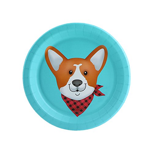 -. Title : Puppy Dog Paw-ty Blue Corgi Party Dessert Plate (8)