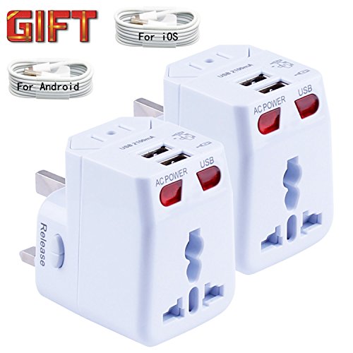 -. Feature : 4 USB cable for iphone and SAMSUNG Android Cellphone As a gift. One year warranty. we also passed FCC, CE, RoHS Certified. / Small in Size, Simple in Operation, User-friendly, and has a Unique and Sleek Design. Compact and lightweight. More powerful compatibility and security, optimized to deliver fast, safe and efficient charging. / Travel adapter plug universally compatible in over 150 countries to convert foreign plugs to 2 or 3 prong plugs. Fits electrical outlets in most commonly visited countries like USA to Europe plug adapter, Brazil, Argentina, Ireland, Italy, Israel, France, Spain, Turkey, Greece, Croatia, Australia, New Zealand, Philippines, Fiji, Korea, China, Japan, Vietnam, India, Indonesia, Middle East, South Africa, Ghana, Botswana, etc. / World Adapter Plug compatible with almost all USB Devices like Apple iPhone , Samsung galaxy, Sony,Nokia, HTC, LG, and so on.Dual USB Ports allows for charging of USB devices.Well the AC power socket can work for other device. Convenient and without any mess. / We've taken the time to establish a fuse system that integrates perfectly with our durable polycarbonate shell and thermal protection layers, offering you the peace of mind that your devices are safe, and your investment will last. Comes with LED power indicator, plug lock system, over-current (overload), high-temperature, short-circuit, fuse and surge protections built-in.