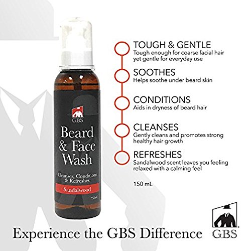 Beard & Face Wash: Helps soothe under beard skin Aids in dryness of beard hair Gently cleans and promotes strong healthy hair growth Sandalwood scent leaves you feeling relaxed with a calming feel