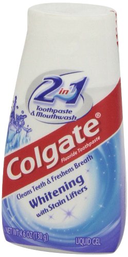 Colgate 2in1 Whitening liquid mint gel provides benefits from both toothpaste and mouthwash. It fights cavities like a toothpaste while freshens breath like a mouthwash. Plus, it helps restore the natural whiteness of your teeth with stain lifters to make your smile much brighter. For more information about this product visit http://www.colgate.comFeature