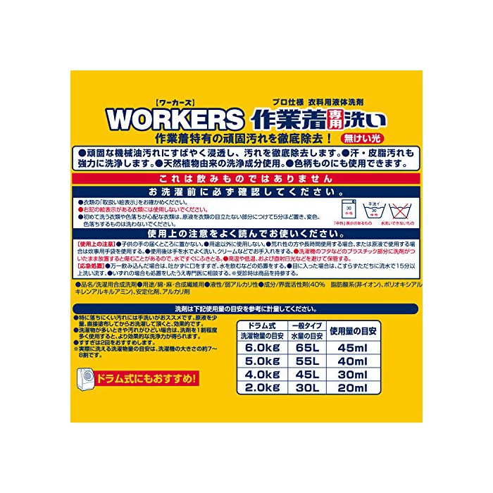 원본상품명: 【大容量】 WORKERS 作業着?用 液?洗? 業務用 4500ml (油汚れ用)
