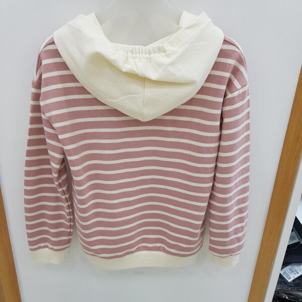 핑크색상의 후드배색긴팔티셔츠입니다.