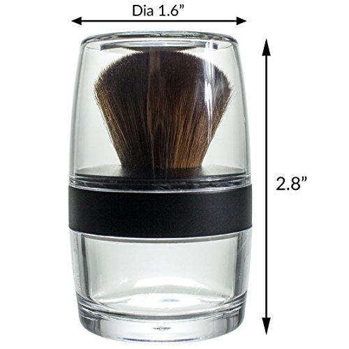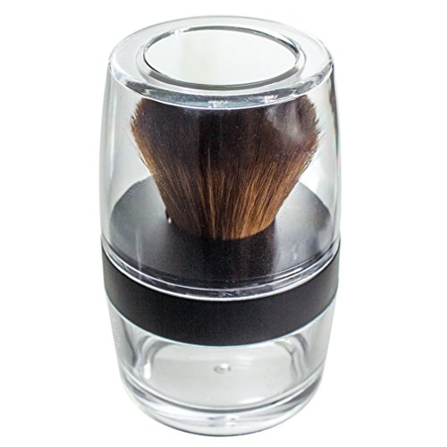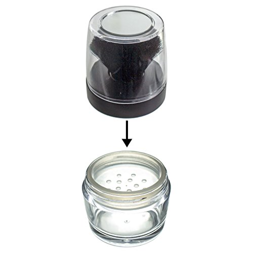 Kabuki Sable Brown Nylon Bristle Brush Sifter Jar - Empty Refillable Travel Jar with Mirror for Mineral Makeup, Powders, Custom Foundations