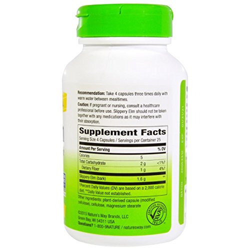 Nature's Way Slippery Elm Bark, 400 mg, 100 Capsules (Pack of 2)