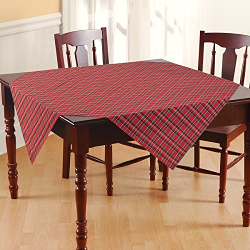 Plaid Tablecloth, Rectangle, Scottish Irish Tartan Stripes, Cotton Fabric, Red Green Yellow Blue White, Oblong Rectangular, C & F Enterprises -- 54 Inches by 70 Inches