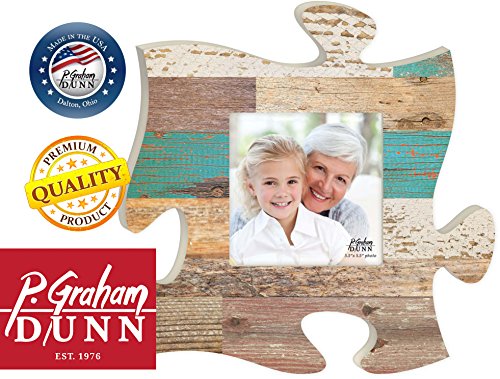 Teal Multicolor Distressed Wood Look 12 x 12 Wall Hanging Wood Puzzle Piece Photo Frame