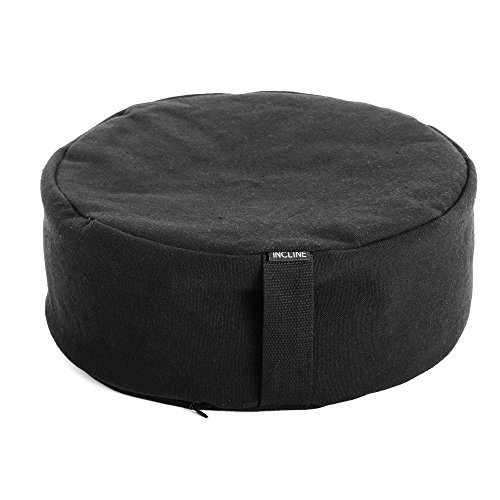 Incline Fit Buckwheat Filled Round Meditation Cushion, Black