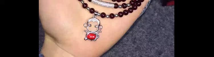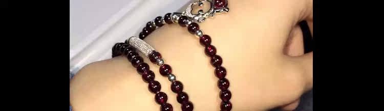 天然酒红石榴石手链女款多圈水晶饰品 925银红刚玉本命年猴子手串