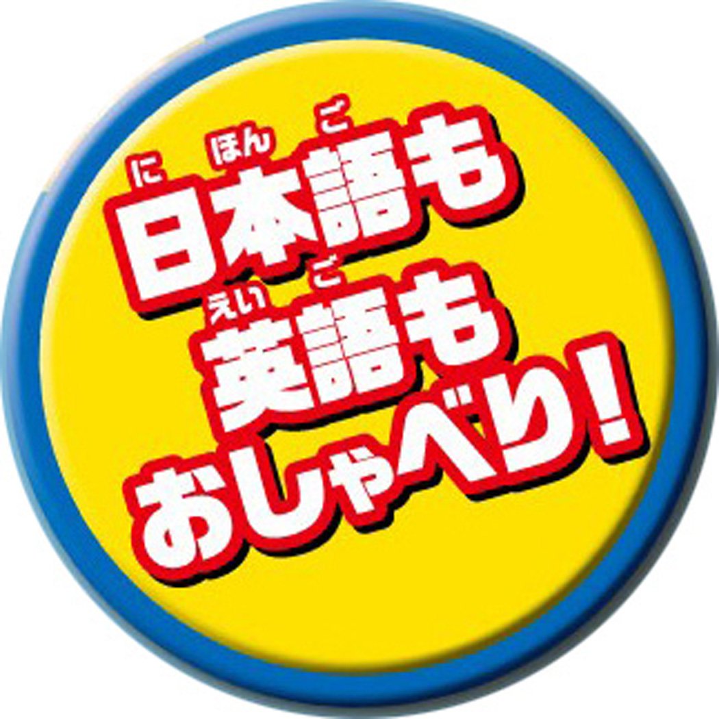 傾けるとおしゃべりする機能はそのままで、切替スイッチで英語と日本語の2か国語のセリフが流れます。