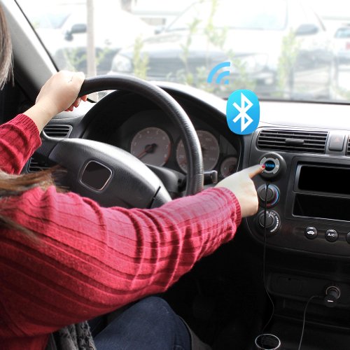 - Feature : The latest Bluetooth 4.0 (fully backward compatible) for full-speed transmission and low power consumption / Echo and noise cancelling technology supply a more clear call quality / Built-in microphone for hands-free calls and voice command (Voice command features limited to phone capabilities). / Music Streaming feature: Play, Pause, Backward, Forward, / 3.5mm AUX plug to connect to car AUX port. Adhesive pad on receiver for easy mounting. Supports Bluetooth profiles: HFP, HSP, A2DP and AVRCP