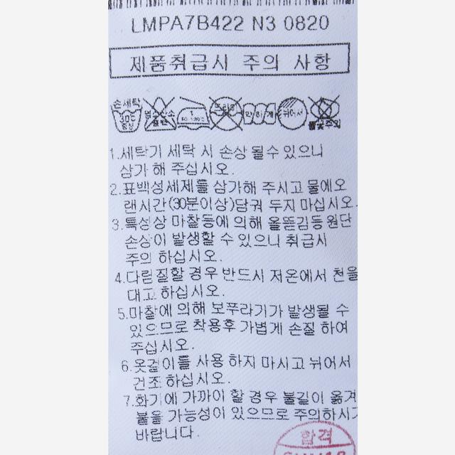 세탁방법 및 취급시 주의사항 1.세탁기 세탁 시 손상될 수 있으니 삼가해 주십시오. 2.표백성 세제를 삼가해 주시고 물에 오랜시간 (30분 이상) 담궈 두지 마십시오. 3.특성상 마찰등에 의해 올뜯김등 원단 손상이 발생할 수 있으니 취급시 주의 하십시오.