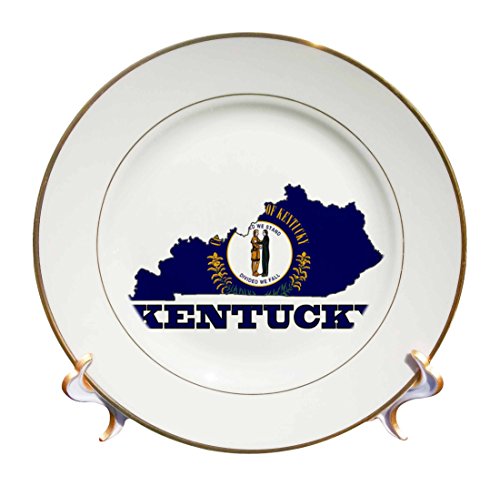 3dRose cp_186869_1 Flag In Map And Name Of The State Of Kentucky Porcelain Plate, 8"