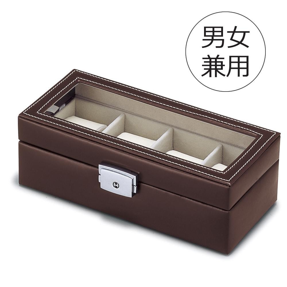 落ち着いた色合いと本革調PVCのしっとりとした質感が高級感を感じさせるウォッチケースです。男女を問わず大切な腕時計を収納できます。