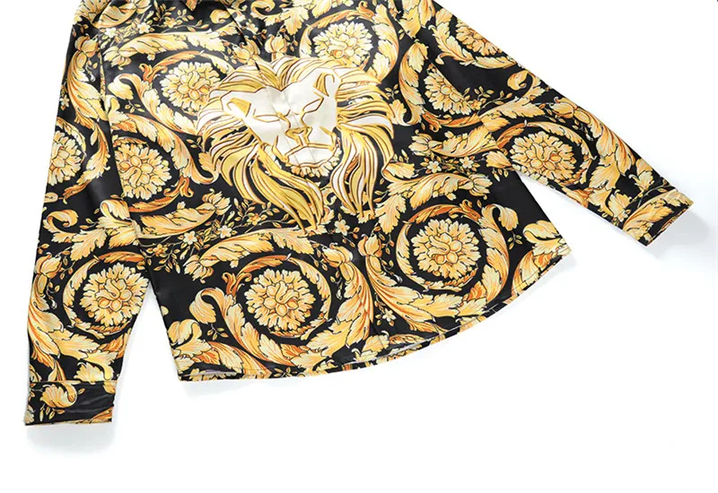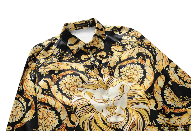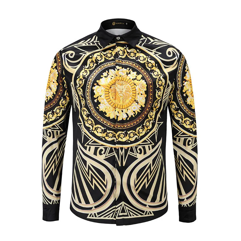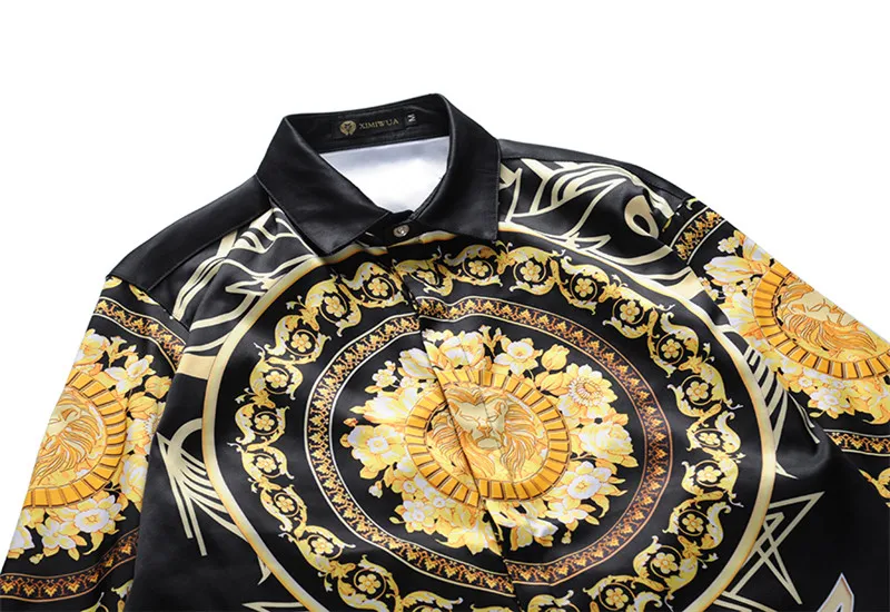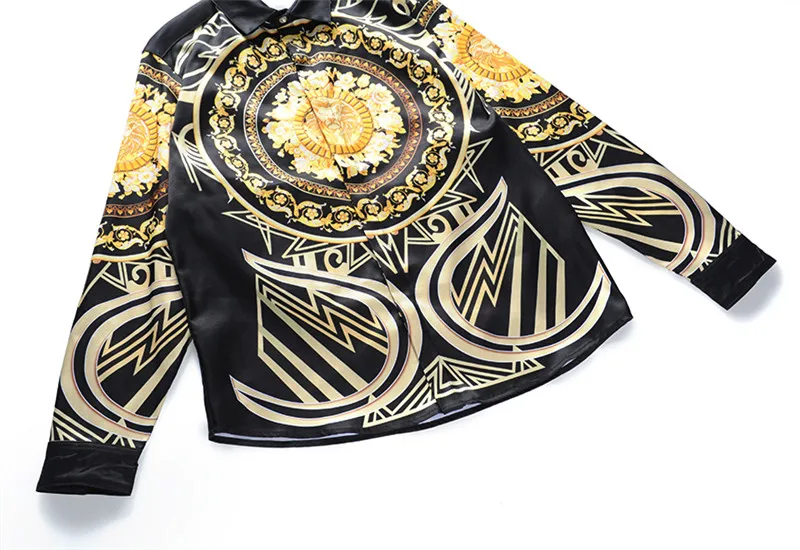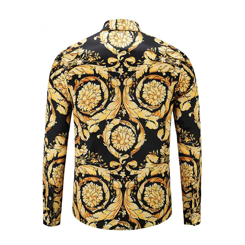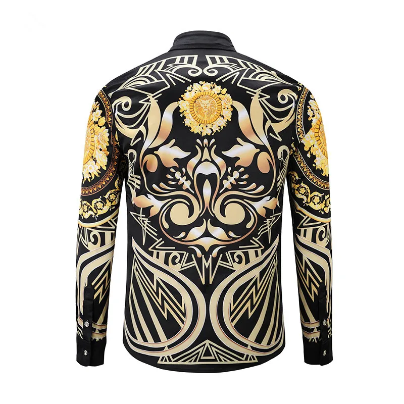 5:Fashion Design Printed Men Slim Fit Shirt Chemise Homme Long Sleeve