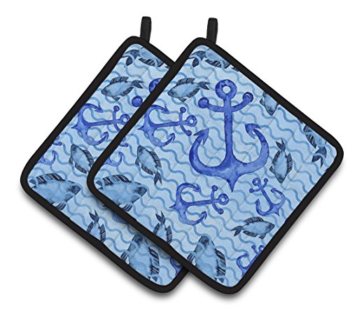 Caroline's Treasures BB7534PTHD Beach Watercolor Anchors and Fish Decorated Pot Holder, 7.5" x 7.5", Multicolor