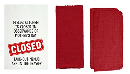R&R Textile Mills 8 Piece Personalized Take Out Kitchen Towel Set, Red