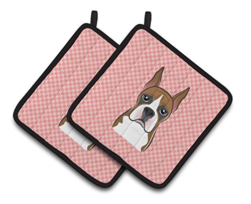 Caroline's Treasures Checkerboard Pink Boxer Pair of Pot Holders BB1223PTHD, 7.5HX7.5W, Multicolor