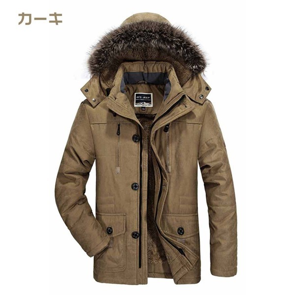 【サイズ】L XL 2XL 3XL 4XL 5XL【素 材】ポリエステル【カラー】ブラック、ネイビー、カーキ、グリーン【POINT 】コスパ抜群のカラバリ豊富な中綿ブルゾンが今季も登場! 中綿をしっかり詰め込んでいながらも着膨れを抑えたスッキリしたスマートなシルエットでアーバンスタイルにもマッチ◎温もりをしっかりキープし防寒性と保温性の優れた仕上がりに★フードはスタイルや気分に応じて取り外しが出来る2WAYタイプです。内側にはポケットが装備されております。袖がリブ状になっていて、冷えやすい手首も寒くありません。ファスナーを上まで閉めると、首元もしっかりガードしてくれるため暖かいです。【ご注意】※お客様のご覧になられますパソコン機器及びモニタ、また室内、室外での撮影により実際の商品素材の色と相違する場合もありますのでご了承下さい。※装飾品はついておりませんのでご了承ください。
