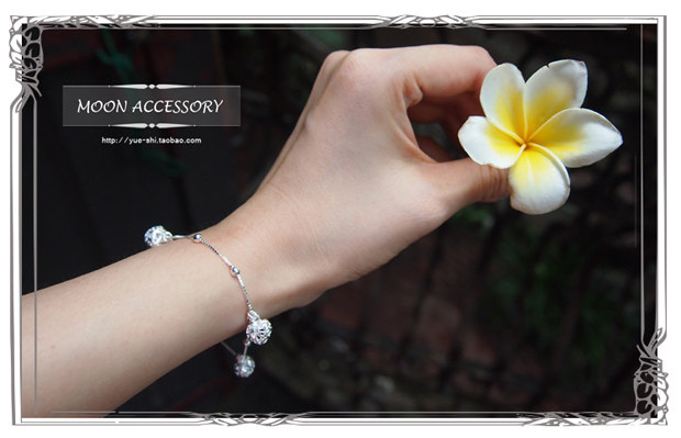 [Details]: 5 fixed set of two silver beads evenly distributed between the two chains, two openwork pattern of love pendant with three small white flower ornaments in silver beads between two fixed, can Activities