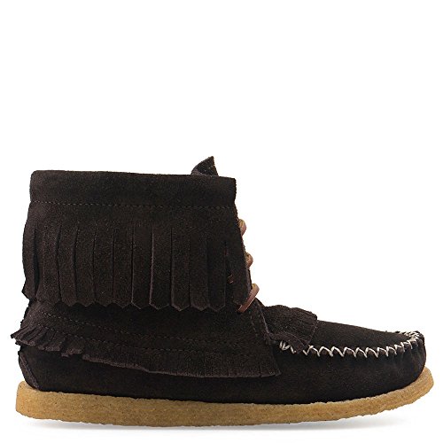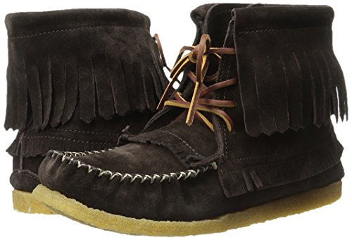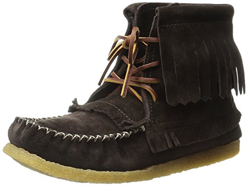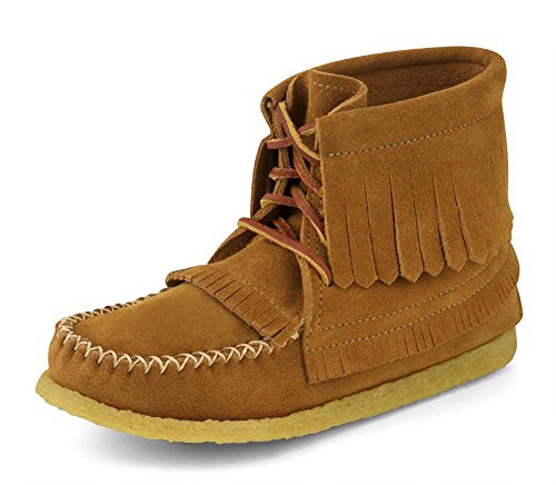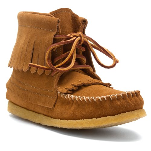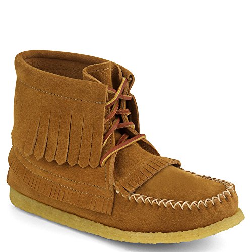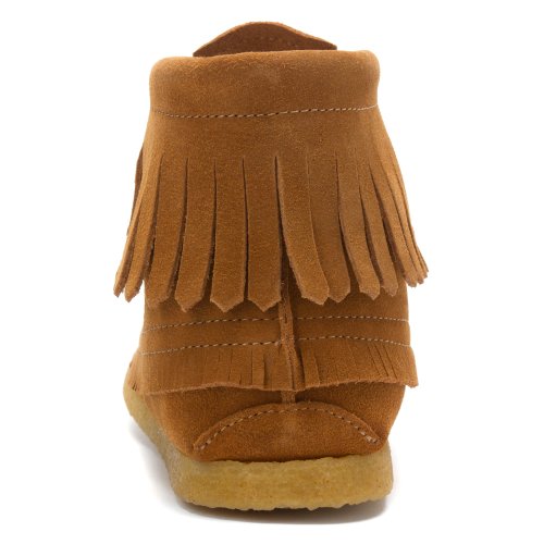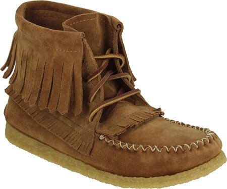 Studio : Eastland Publisher : Eastland Binding : Apparel Product Description Eastland vintage fringe suede ankle boot paired with a natural crepe sole. Hand sewn using traditional true moccasin construction and premium soft suede to wrap your foot in comfort. Rolled collar, double fringe with kiltie and crisscross toe seam. Rawhide leather laces. Genuine plantation crepe rubber outsole gives retro appeal while providing great slip-resistance, durability and shock-absorbing cushioning. Boot height: 4 1/2. Heel height: 3/4. 0