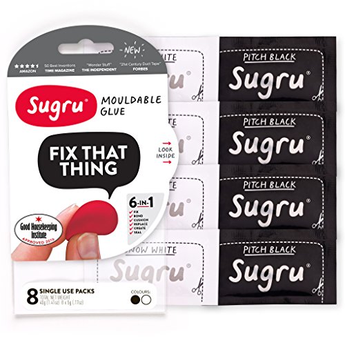 The sugru - Multi Color (Pack of 8) gives you 8 foil-wrapped pieces of sugru ready for 8 fixing sessions around the house, car, garden, kid’s playroom or just about anywhere really. You get 2 pieces of red, yellow and blue sugru, and one each of black and white - perfect to colour blend for invisible fixes around the home, or adding colourful improvements to personal items.