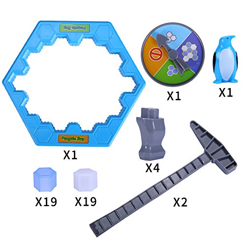 -. Feature : Material: Environmental ABS; Fit for kids above 3 years old and the family / Package includes: Penguin*1, Ice*38, Hammer*2, Ice Platform*1, Turntable*1 / Great family game, Suit for 2-4 persons. / The game of combination cultivate a baby's practical ability,practice the flexibility of hands,promote its development both hands and eyes. / Keep the penguin stand at ice. Penguin fall, lose the game.