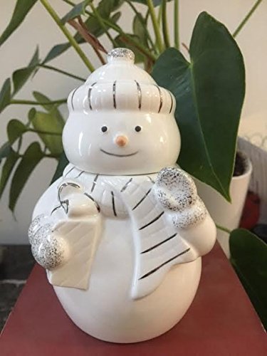 Lenox Snowman Covered Candy Jar White porcelain with platinum accents 5"