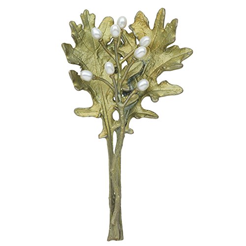 Made of hand-patinaed green bronze and accented with freshwater pearls