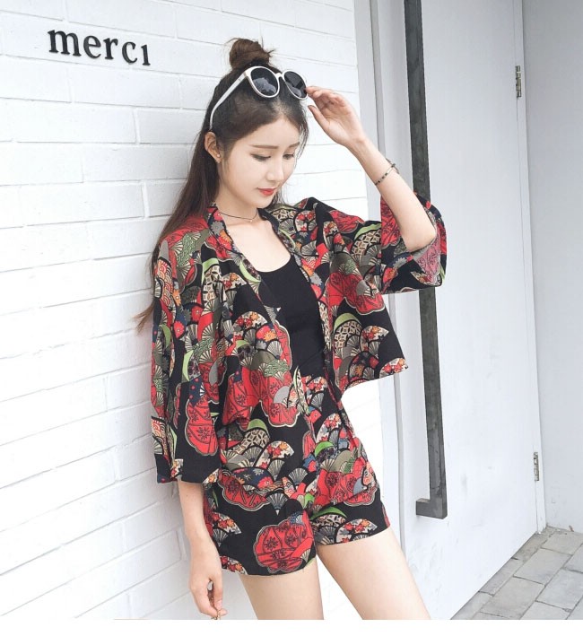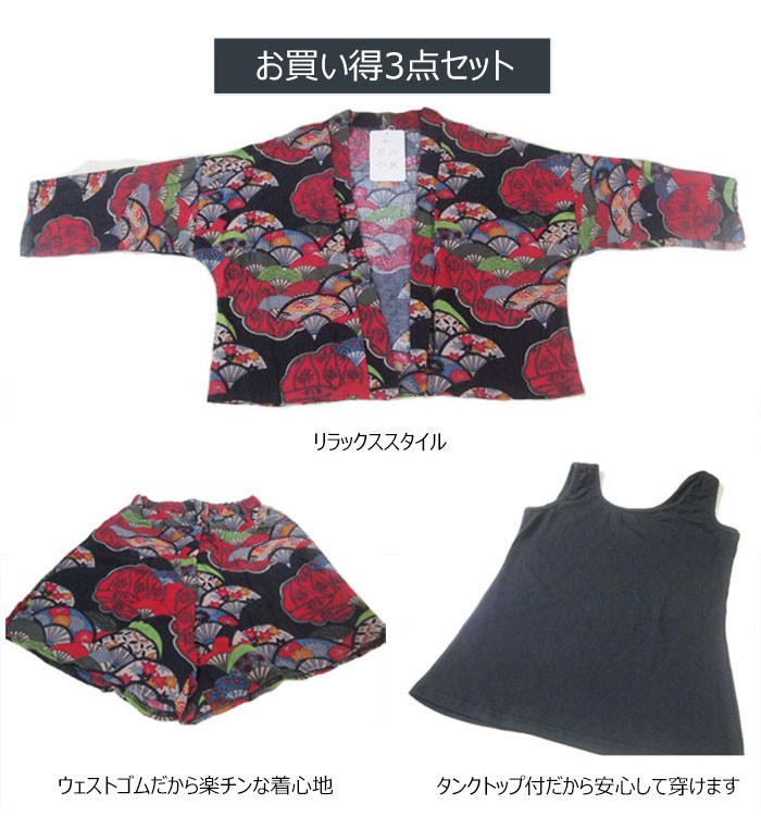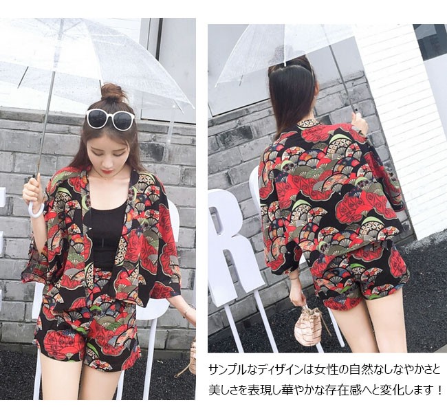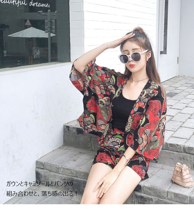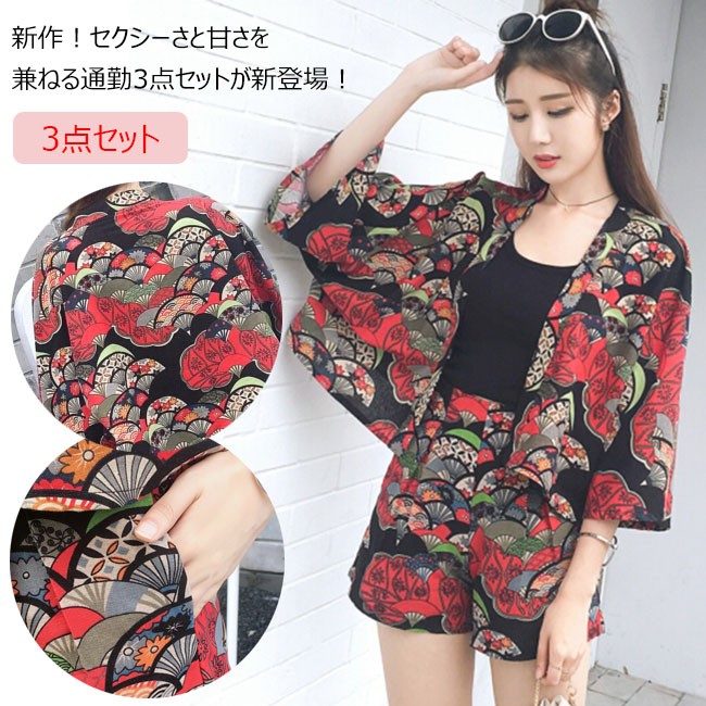 | 商品名 | 3点セット セットアップ レディース サマーセット(カーディガン+キャミソール+ショートパンツ) 花柄 和風 前開き ゆったり フェミニン 夏 |