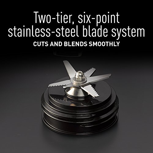 • Two-tier, six-point stainless-steel blade system smoothly cuts and blends