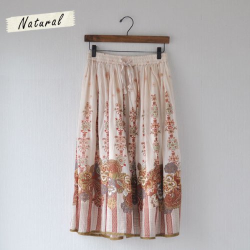 -. Feature : ちょっとエスニックな雰囲気の花柄とペーズリーの組み合わせで、エレガント&クラシカルなデザインのふんわりスカート。