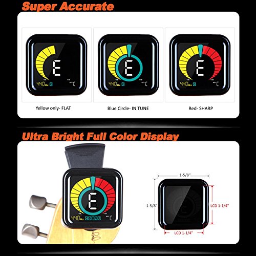 FOR ALL INSTRUMENTS- offers 5 auto modes for guitar, bass, violin, ukulele, as well as a chromatic mode for use on any instrument including 12 string, classical, banjo, mandolin, trumpet, clarinet, cello, viola, trombone, saxophone, flute, zither, woodwinds, and brass- nearly universal. If it clips on it tunes!