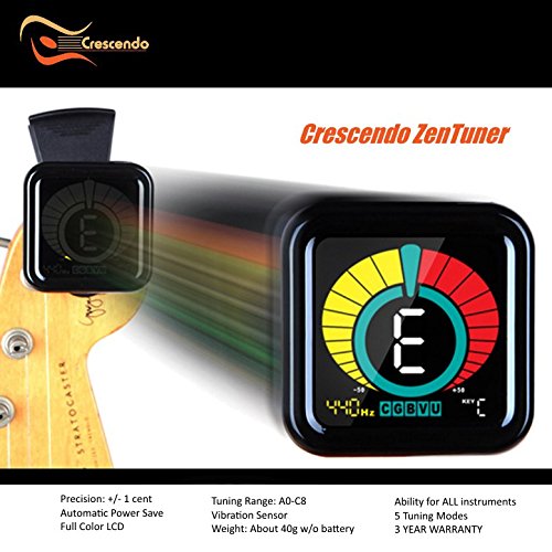 Crescendo ZenTuner Clip-On Tuner, Acoustic, Electric Guitar, Bass, Violin, Ukulele, Chromatic Mode for All Instruments, Fast & Accurate, Multi-Mode, Easy to Read Color Display, Pro and Beginner