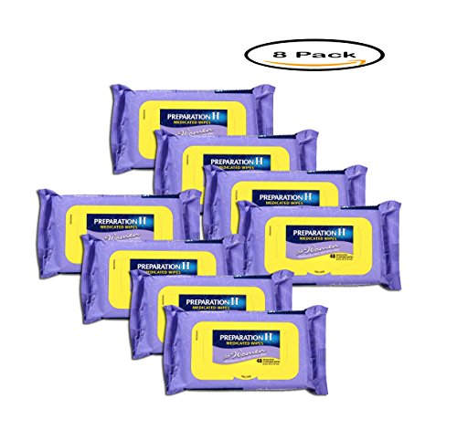 Studio : Preparation H Publisher : Preparation H Binding : Health and Beauty Product Description Preparation H Medicated Wipes for Women are the first and only women's hemorrhoid wipes infused with chamomile, aloe and refreshing cucumber, plus a soothing medication that cools on contact. They protect the irritated area for effective hemorrhoid relief. Preparation H Medicated Wipes for Women can be used for gentle, everyday cleansing to cool and soothe. Use before Preparation H Gel, Ointment, Cream or Suppositories for better relief. 0