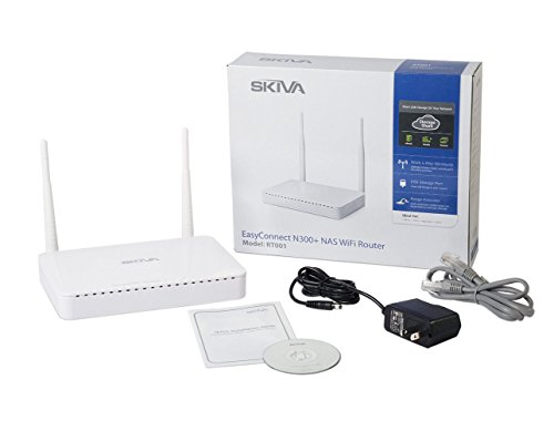 -. Binding : Electronics -. Brand : Skiva -. Color : White -. EAN : 0609728843243 -. Feature : Skiva 4-Port 802.11n N300 Wifi router is designed for home and business. / It delivers upto 14x faster speeds and 6x farther range than 802.11g. / Easily share P.R.Inters, files or media with your friends or family on your network using built-in USB port / Built in WPS button allows you to connect to router with a single button press. / NAT and SPI firewalls helps block malicious attacks on networks from Internet. -. IsEligibleForTradeIn : 1 -. Label : Skiva -. Manufacturer : Skiva -. Model : RT001 -. MPN : RT001 -. PackageQuantity : 1 -. PartNumber : RT001 -. ProductGroup : PC Accessory -. ProductTypeName : NETWORKING_DEVICE -. Publisher : Skiva -. Studio : Skiva -. Title : Skiva 4-Port 802.11n N300 Wifi router with USB Storage Port (300 Mbps), WPS Button [Model:RT001] -. UPC : 609728843243 -. Warranty : 1 Year Manufacturer Warranty