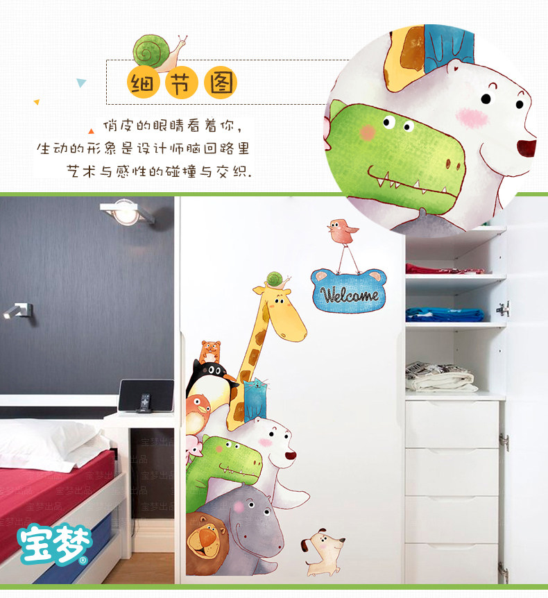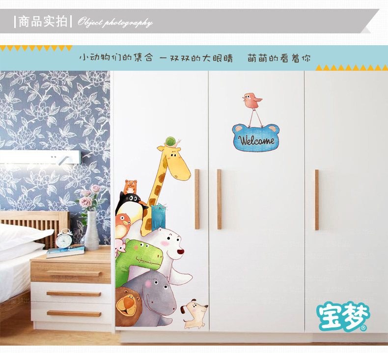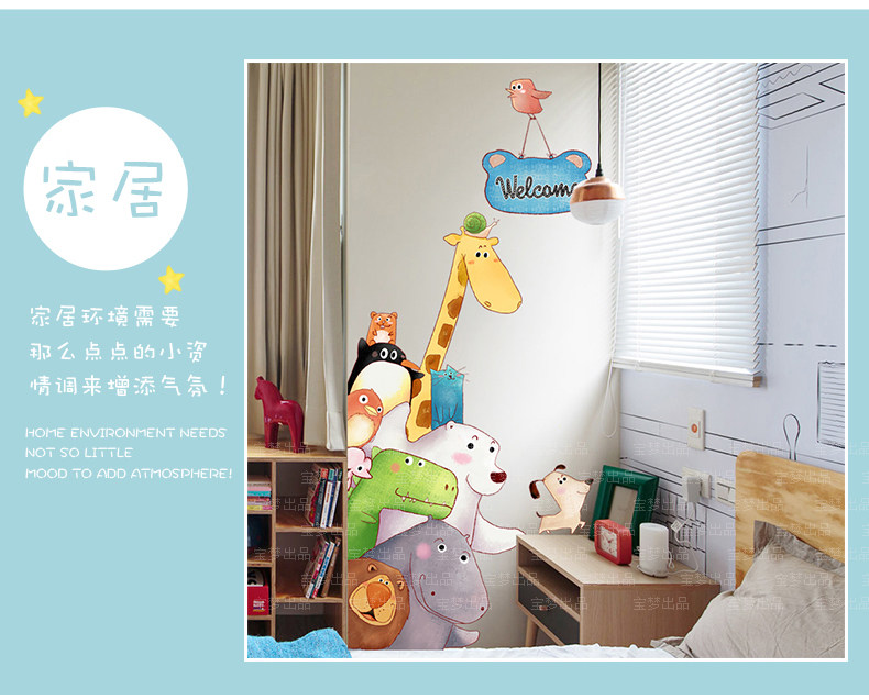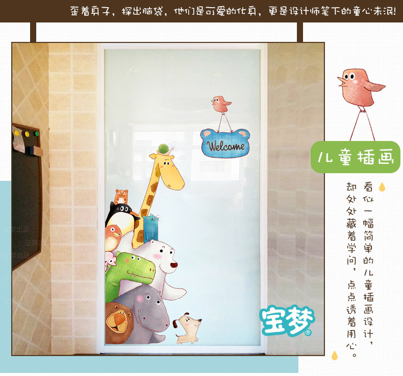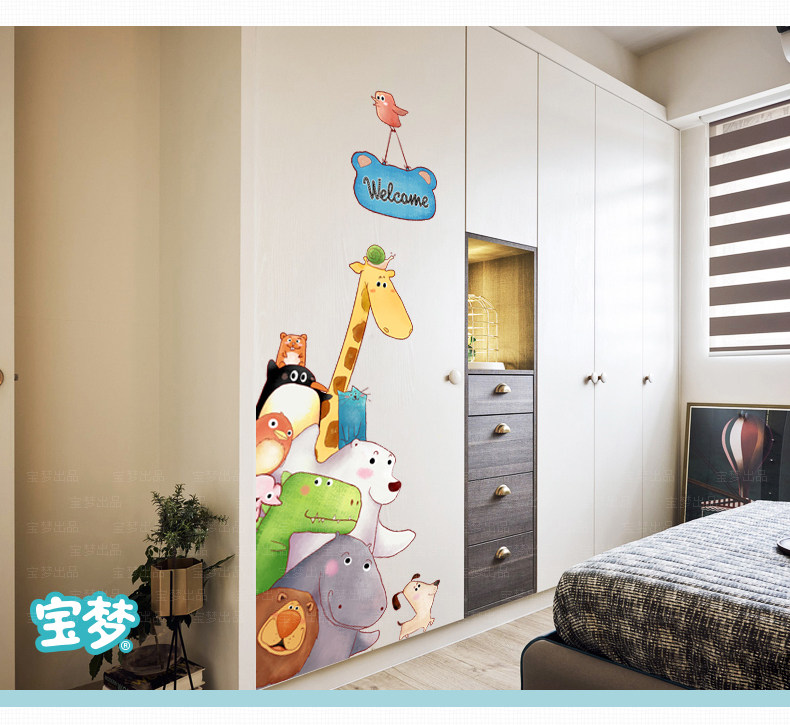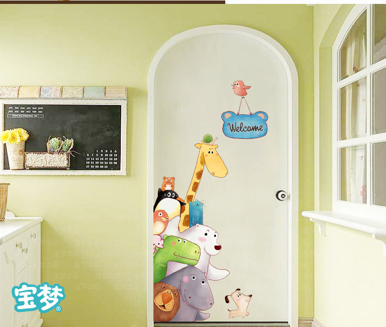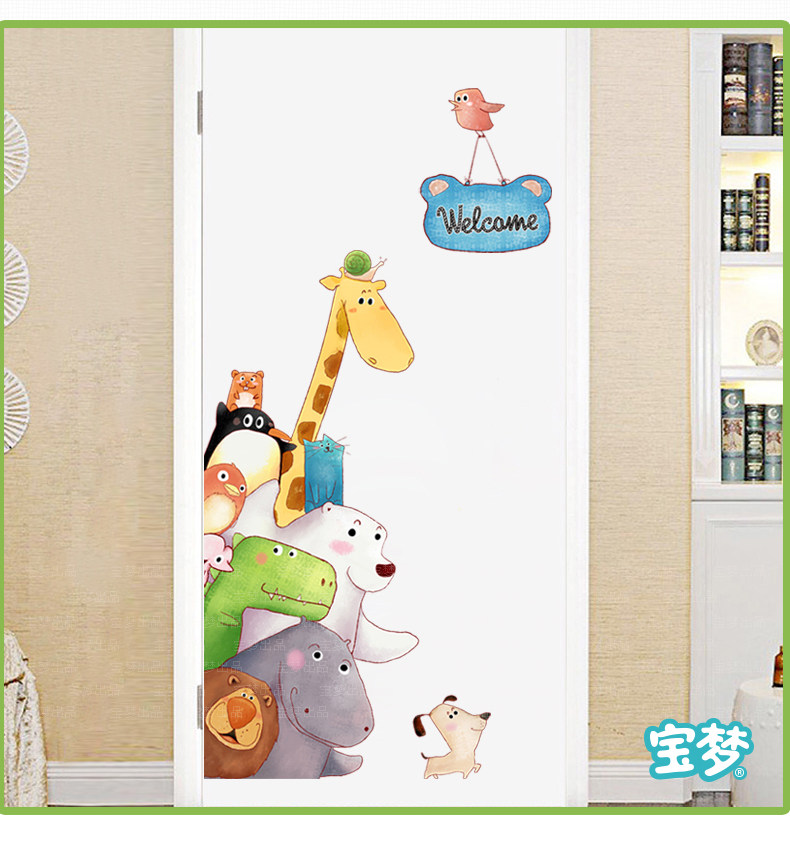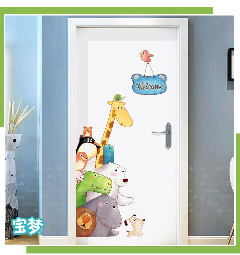 卡通儿童房卧室装饰可爱动物门贴画创意ins幼儿园教室走廊墙贴纸