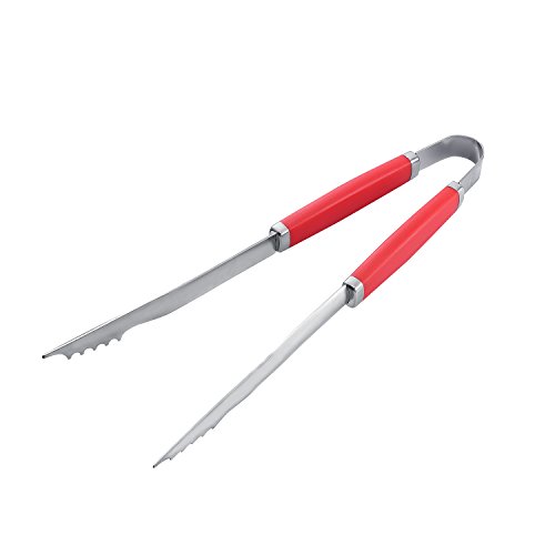 The 3-in-1 spatula features serrated cutting edge serves as a knife as well as a spatula, and perforated head for turning with a built-in bottle opener; The tongs edge has a serrated edge to help grasp meat and provides good control;The fork is very sharp but perfect for grabbing onto a pork butt to flip it over, also great for grilling hotdogs and brats.