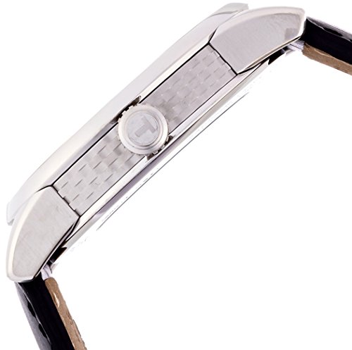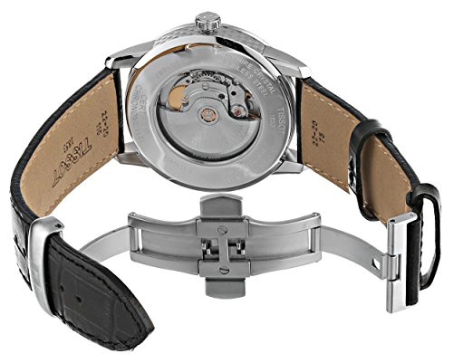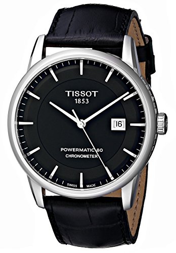 -. Feature : Tissot luxury automatic black dial stainless steel black leather men's watch / Date display at the 3 o'clock position. Automatic movement with 80 hour power reserve. Scratch resistant sapphire crystal. Skeleton case back / Swiss-automatic movement / Case diameter: 41mm / Water resistant to 165 feet
