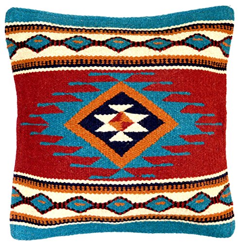 Let these beautiful geometric southwest designs bring a bold, enchanting feel of the rustic southwest to any room. These unique, high quality, hand-woven wool Throw Pillow covers are an amazing artistic expression of Native American, ancient Latin American, and southwest culture. Wool is naturally anti-static, Hypoallergenic, flame resistant, and stain resistant to endure years of regular use while maintaining its vivid color and beautiful look. Constructed with a sturdy canvas back featuring a strong velcro closure. Measures approximately 18 x 18 inches. Insert Pillow is not included. See our other listings for matching table runners, hand bags, tote bags and place mats. See MATCHING PILLOW INSERTS available at www.amazon.com/dp/B01B25ET5SFeature