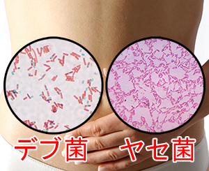 | ●デブ菌の大量滞留 ●便秘になりやすい ●宿便が腸に溜まる |