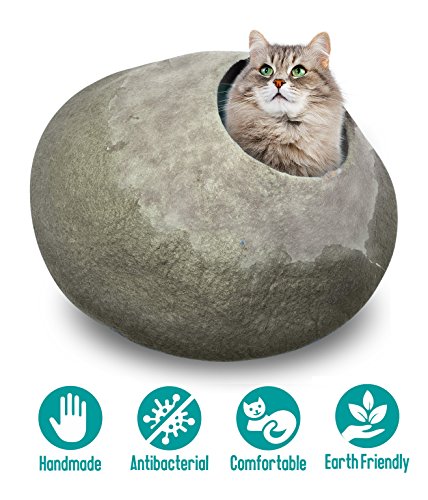 Studio : Juccini Publisher : Juccini Binding : Misc. Product Description Handcrafted Felted Wool Cat Cave Bed (Large) For Cat and Kittens - Felted from 100% Natural Wool The Cat Cave is a cozy and comfortable cat bed handmade from all natural wool.Each one is made with love with the highest quality wool available to ensure that your cat is happy and healthy.This cat bed provides warmth, comfort and privacy to your cat. Perfect for cats to play, nap, rest and sleep inside or on top. Handmade with care and designed to make your cat feel at home(warm in wonter and cool in summer). Suitable for kittens, big cats and small dogs.It can also be used indoors and outdoors as padded mat. Free shipping. Shipping within 12 hrs from USA. 100% Money Back Guarantee!! 0