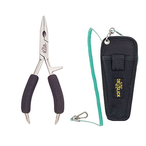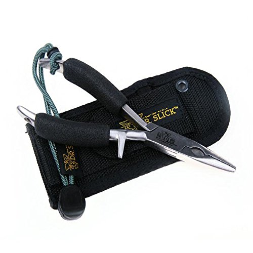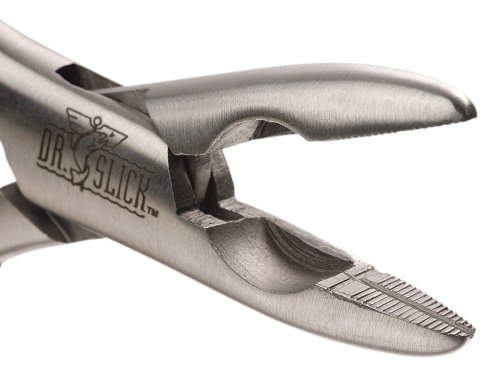 Studio : Dr. Slick Publisher : Dr. Slick Binding : Misc. Product Description Whether you fish the ocean, lakes, rivers or ponds, we have the pliers you need to handle big flies, tough lines, and large fish. SALT WATER When angling in salt water, consider using pliers with the black oxidized finish which provides an extra layer of protection. The Pisces Plier has a zinc coating for protection. For longevity in salt water be sure to rinse your pliers in fresh water and apply a little oil.METAL The Bullet Head, Chain Nose and Barracuda pliers are made with 410 stainless steel with a Rockwell hardness of 45 on the cutters. The Pisces has a Rockwell hardness of 55 due to the Tungsten Carbide cutters.Dr. Slick Chain Nose Pliers: Chain Nose Plier has a needle nose jaw with an aggressive jaw structure. - Available in Straight Jaw Only
